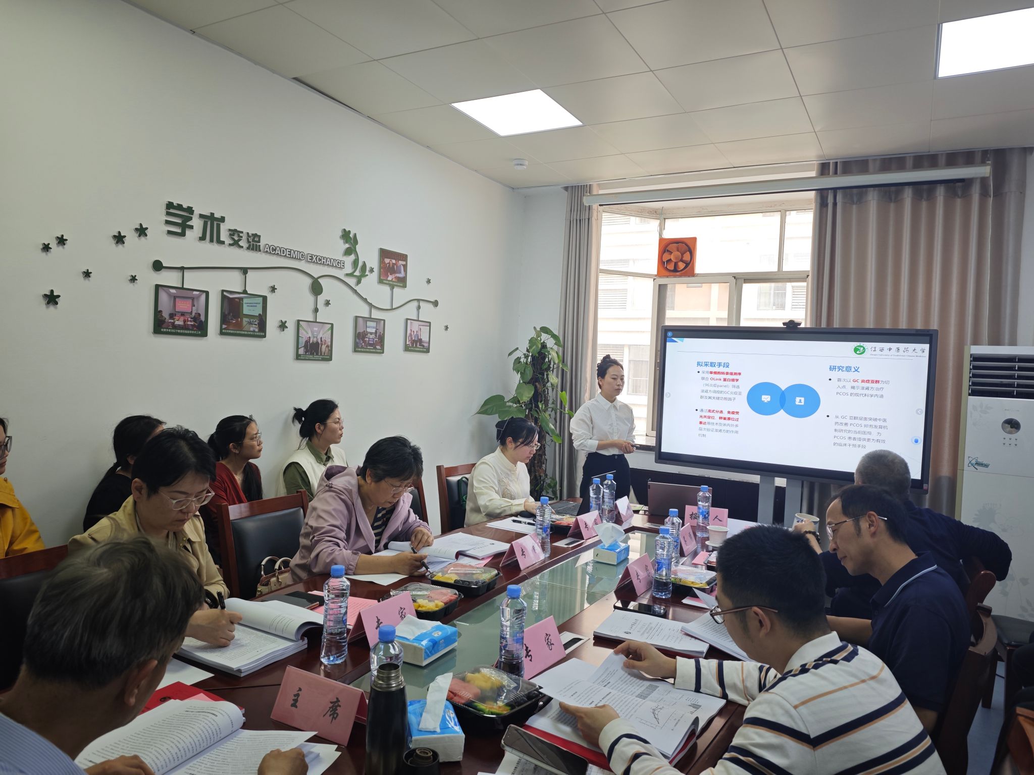 预答辩会上,两名博士研究生依次登场,围绕各自的论文研究内容展开详细汇报。刘婷婷博士以《滋肾清热利湿化瘀方调控颗粒细胞炎症亚群改善PCOS卵母细胞发育的作用机制》为题,系统阐述了多囊卵巢综合征(PCOS)的发病现状及中医治疗优势,深入汇报了滋肾清热利湿化瘀方通过调控颗粒细胞炎症亚群、改善卵母细胞发育的具体作用机制,为中医临床治疗PCOS提供了新的理论依据和实验支撑。徐梦丹博士的答辩题目为《子宫因素导致的继发性女性不孕症中医诊疗指南的研究》,聚焦全球范围内日益突出的不孕症问题,重点探讨了子宫病变作为继发性不孕主要病因的临床现状,指出当前中医治疗该病症存在辨证不规范、治疗不统一的问题。汇报中,该博士详细介绍了指南制定过程中文献检索、问卷调查、专家评议等科学方法的应用,对提升中医诊治子宫因素导致的继发性不孕症的整体水平、节约医疗资源具有重要意义。